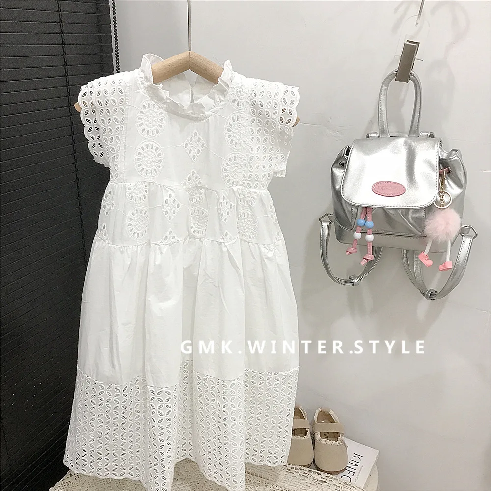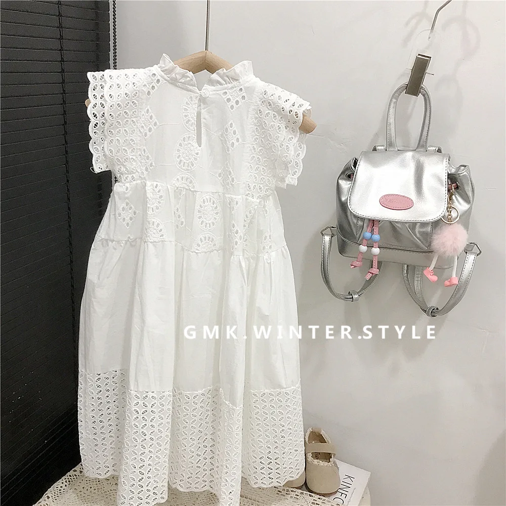 Children Girls Sling Dress Summer 2026 Kids Baby Girls Hollow Out Sleeveless Dress Embroidery Heavy Industry Embroidered Skirt