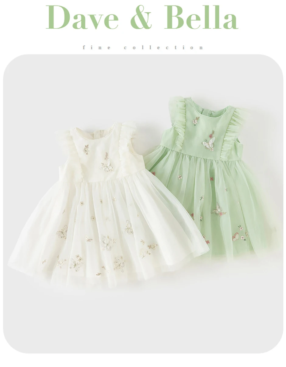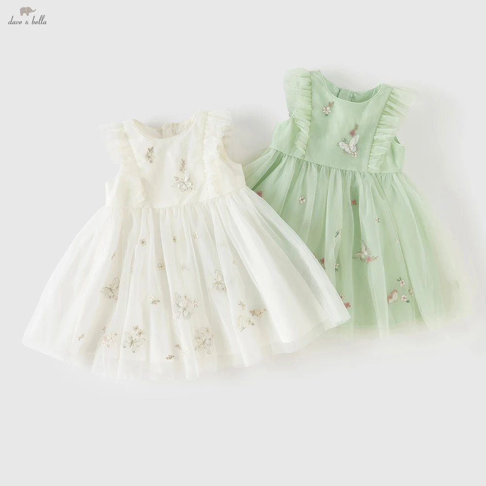 Dave Bella Embroidery Lace Mesh Princess Dress Girls Baby Children Sleeveless Summer Dress Sweet Party Clothes DB2261848