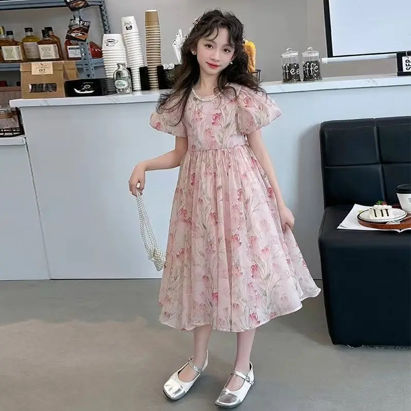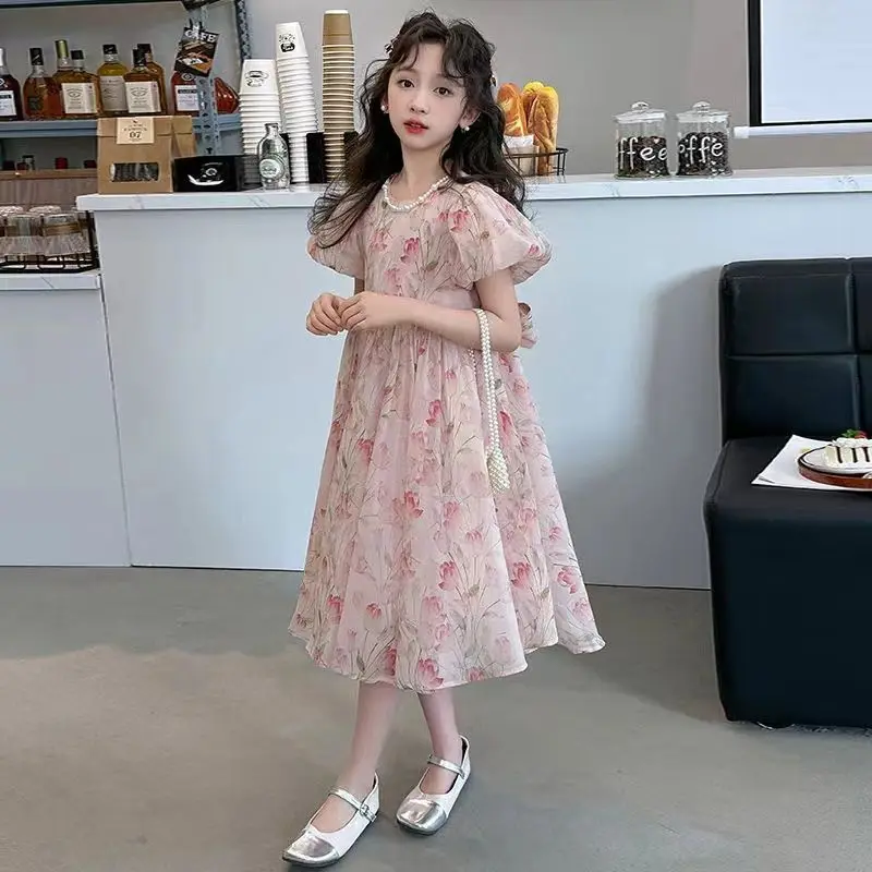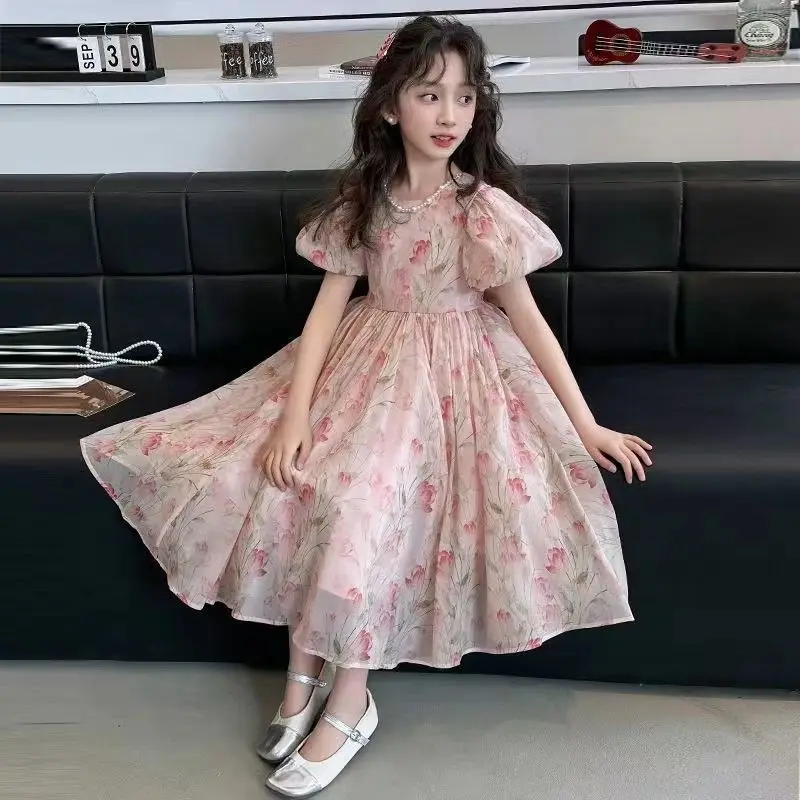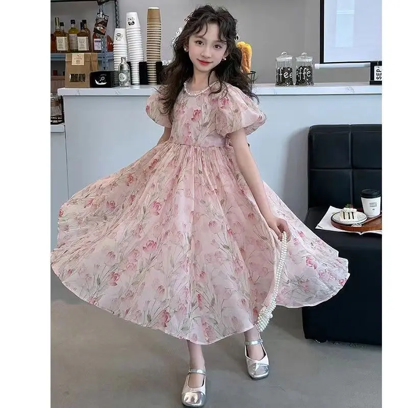 Girls' older dress summer new foreign style children's sweet princess dress girls bubble sleeves super beautiful skirt